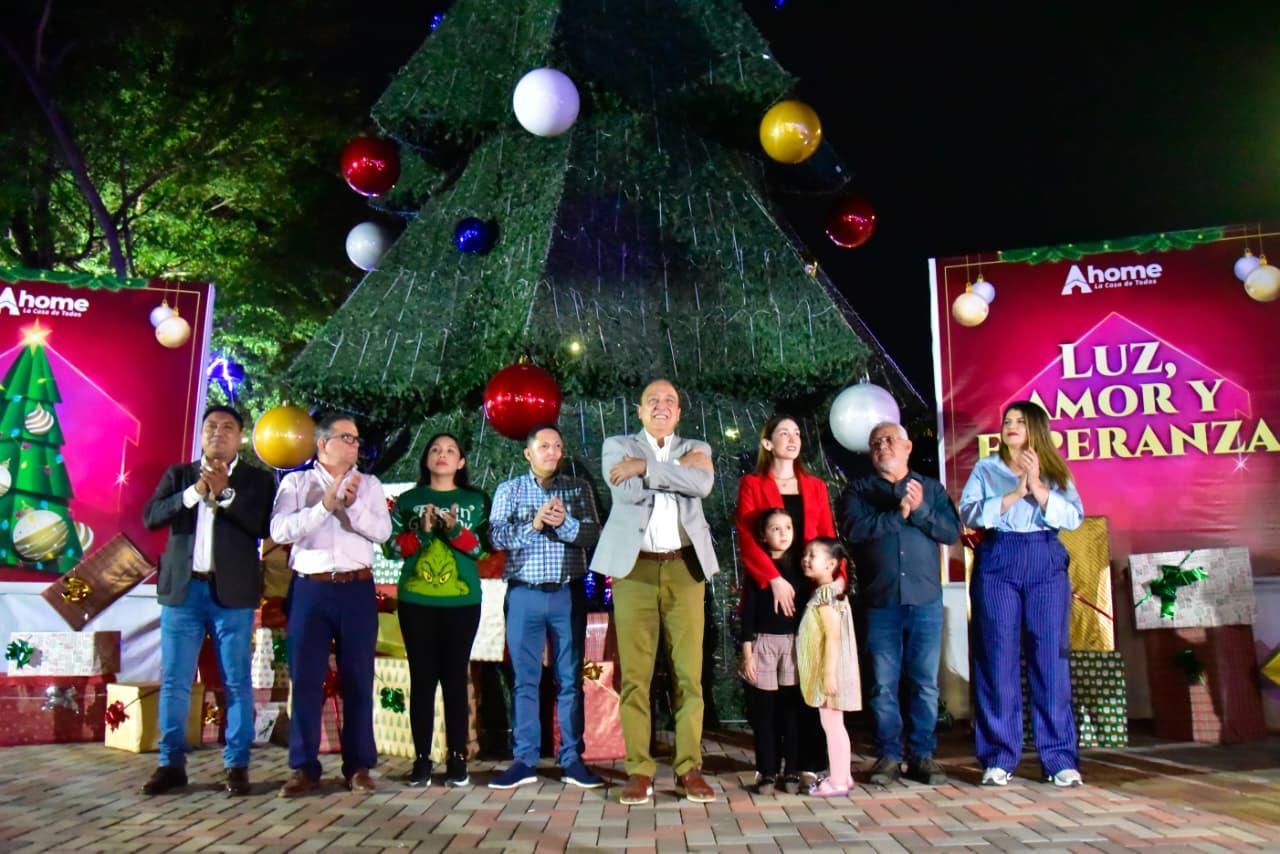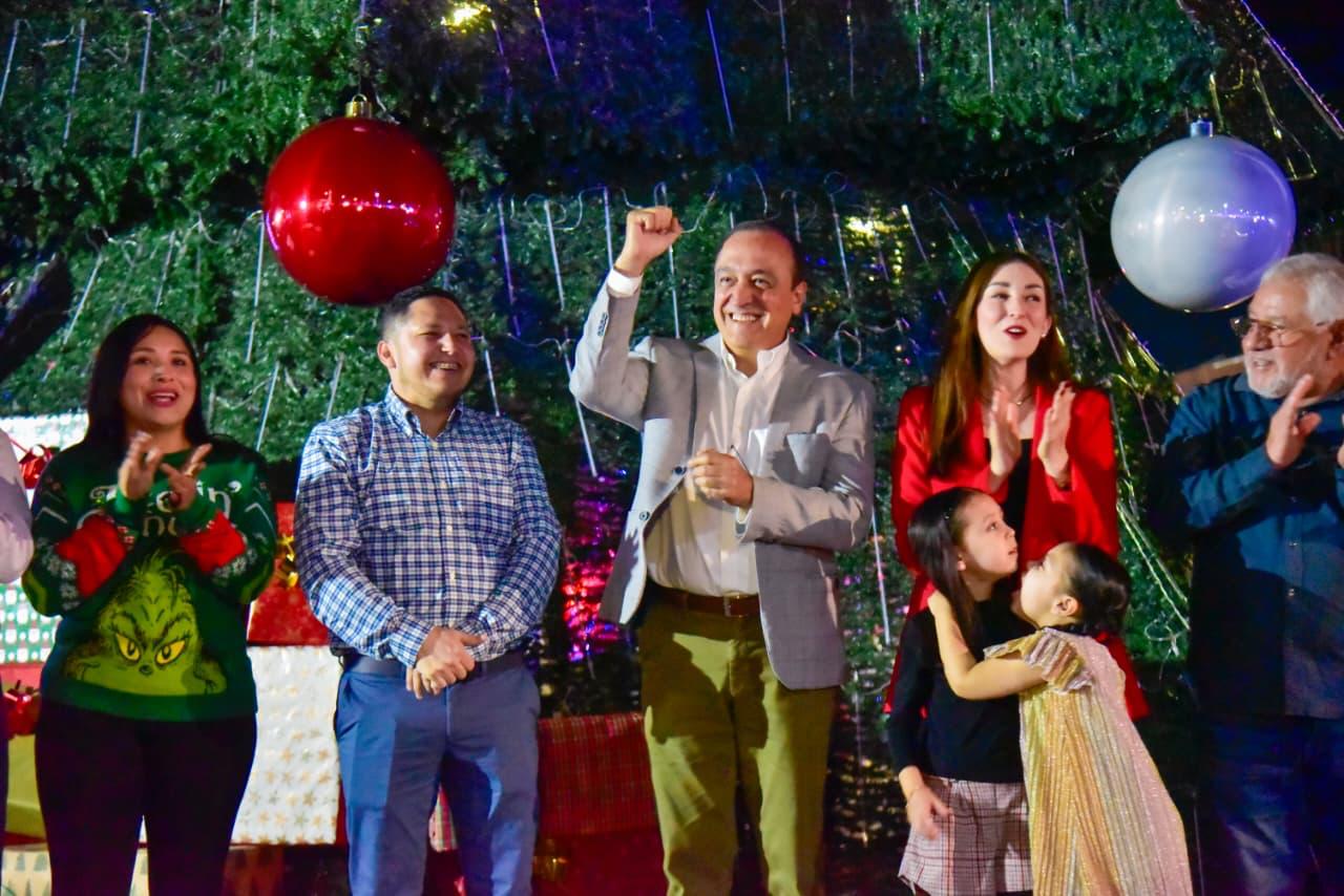 Alcalde Antonio Menéndez enciende el Pino Navideño con un mensaje de paz, amor y esperanza para los ahomenses.