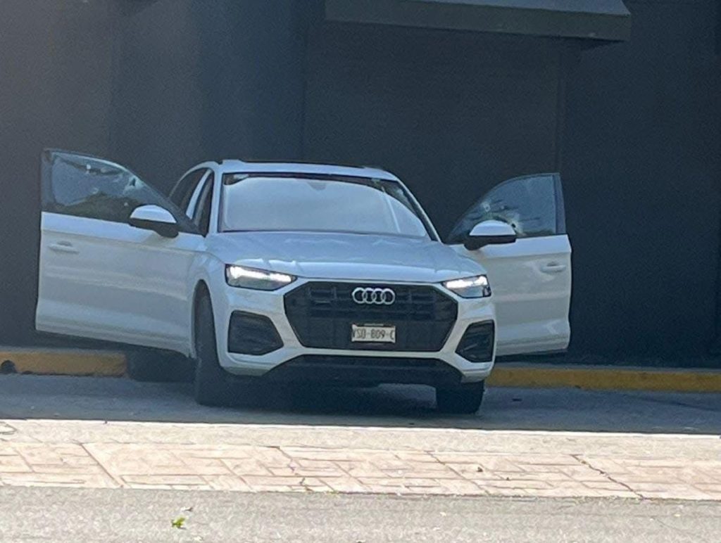 En el sitio quedaron dos vehículos rafagueados, una camioneta Audi blanca y un automóvil MG del mismo color, ambos con impactos de bala visibles en cristales y carrocería, escena que evidenció la intensidad del ataque y generó pánico entre peatones y automovilistas.