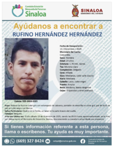 La comisión puso a disposición de la ciudadanía el número de teléfono 669 327 84 24 para cualquier información que ayude con su localización.