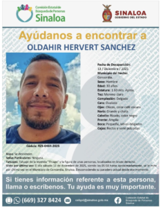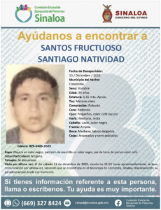 La Comisión Estatal de Búsqueda de Personas de Sinaloa emitió fichas para la localización de seis hombres que fueron vistos por última vez el sábado 13 de diciembre 2025, en el municipio de Concordia.