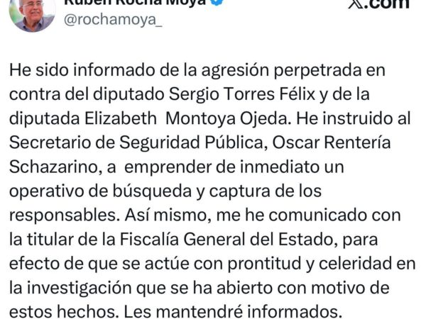 Estatal enero 28, 2026 Rocha Moya ordena operativo inmediato tras ataque armado contra diputados en Culiacán Read more