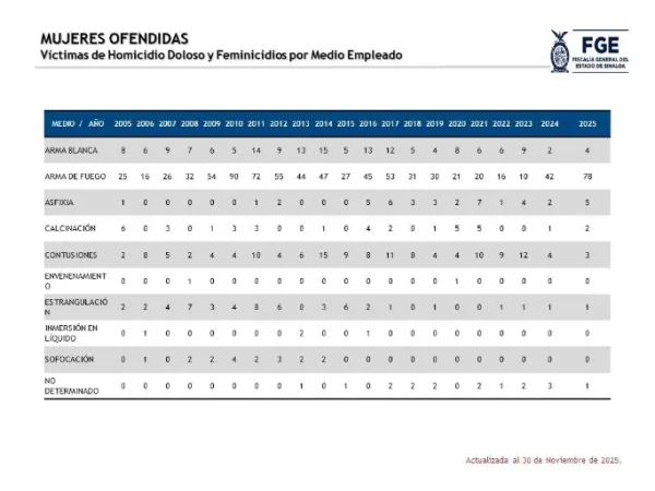 Estatal diciembre 18, 2025 En Sinaloa, la mayoría de los asesinatos de mujeres se cometieron con armas de fuego en 2025 Read more