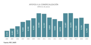La extinta ASERCA (Agencia de Servicios a la Comercialización y Desarrollo de Mercados Agropecuarios) operaba el Programa de Apoyos a la Comercialización que era un instrumento estratégico de la política agropecuaria orientado a promover la comercialización de las cosechas, a través del Ingreso Objetivo que garantizaba una rentabilidad y la Agricultura por Contrato que mitigaba la volatilidad de los precios y mejoraba la capacidad de venta de los productores.