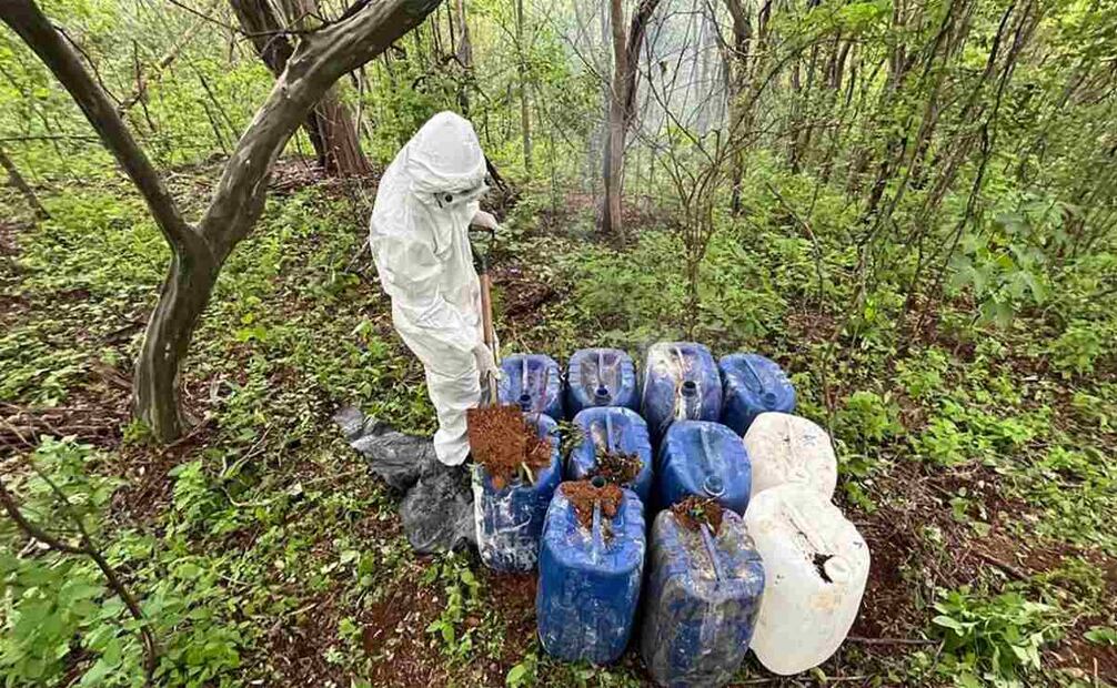 Autoridades federales localizaron e inhabilitaron cuatro áreas de concentración de materiales para la fabricación de drogas sintéticas en los poblados Las Guásimas, Canamaca, Arroyo Grande y Mezcaltitán en Sinaloa.